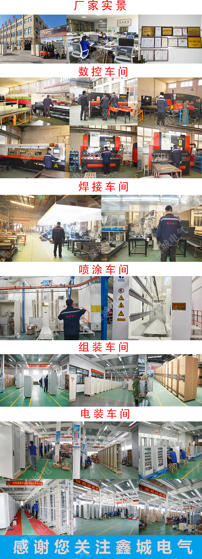 鑫城电气拥有较强的技术力量,完善的企业化生产和检测设备,成熟的市场渠道,良好的企业声誉。近年来,建立并通过了质量体系ISO9001:2015标准质量认证、职业健康安全管理ISO45001-2018、环境管理ISO14001-2015体系的认证,欧盟CE认证,ROHS认证报告,配电箱壳体IP66、动力柜XL-21IP66、机柜抗震8级检测、外观设计专利、实用新型专利和软件著作权。2019年按国家强制性生产要求,我公司又取得低压产品的CQC证书。