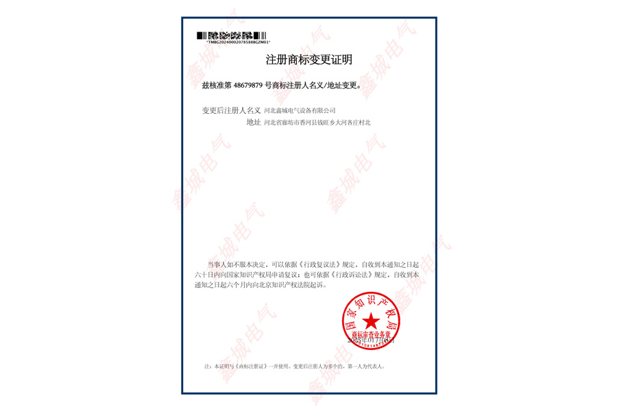 资质荣誉 当前位置:首页 > 资质荣誉 > 鑫城电气 注册商标